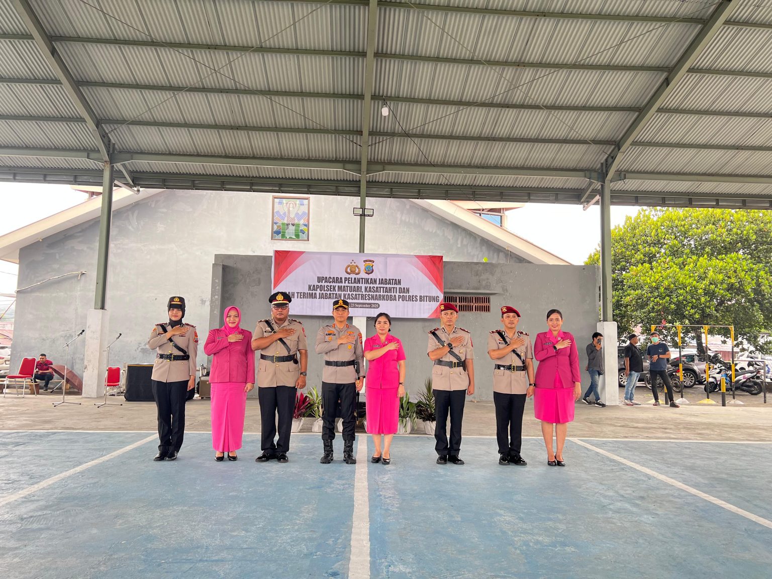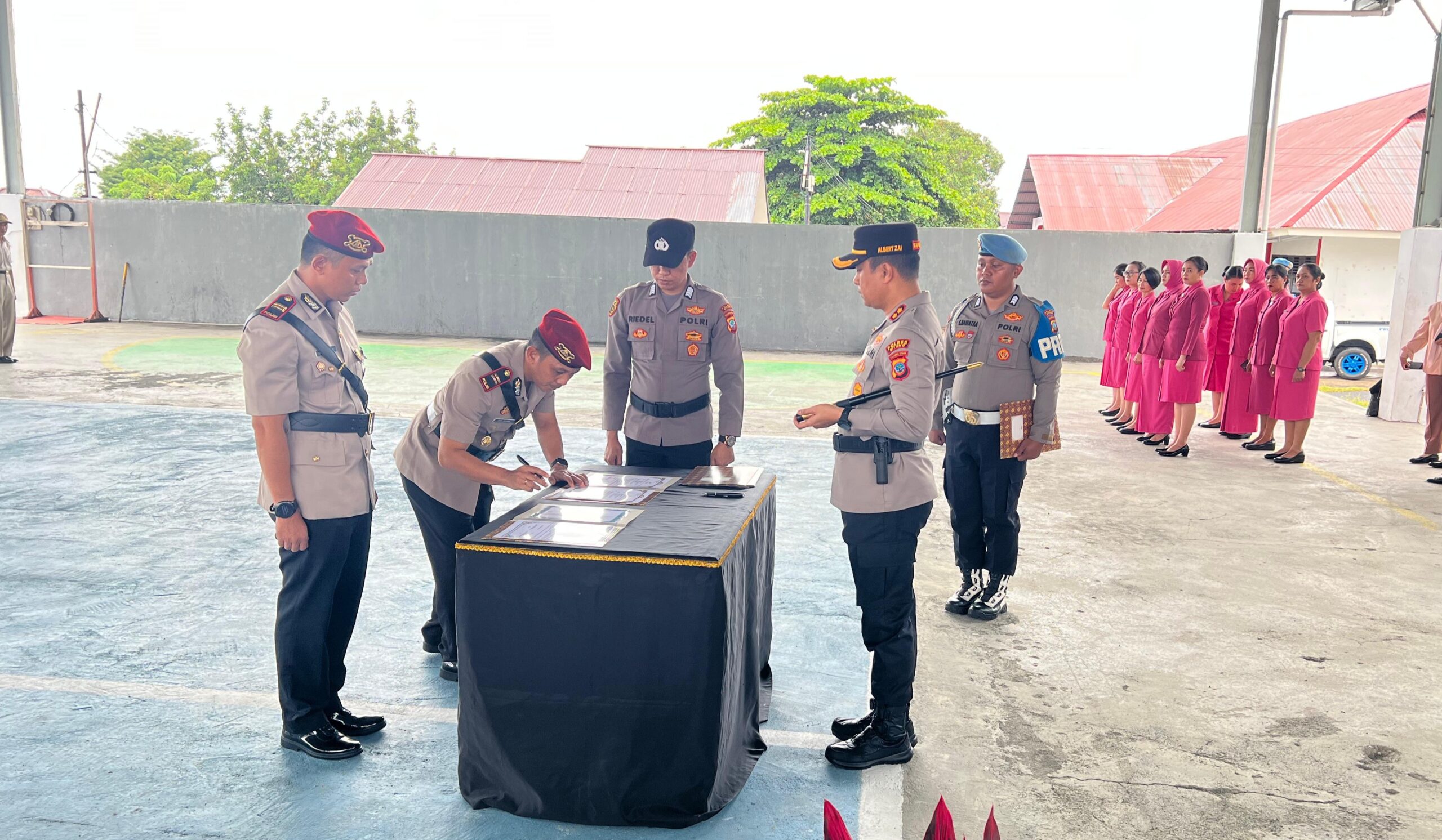 Serah terima jabatan itu dipimpin langsung oleh Kapolres Bitung AKBP Albert Zai di Sport Hall Aspol Pinokalan, Kelurahan Pinokalan, Kecamatan Ranowulu serta dihadiri oleh Waka Polres Bitung, KOMPOL JH Daniel Korompis, SE, PJU Polres Bitung, perwira, bintara, dan pengurus Bhayangkari Cabang Bitung, Selasa (23/9/2025).